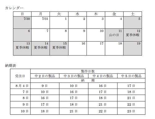 8月11日(金)~15日(火)を夏期休暇のため休業させて頂きます。
