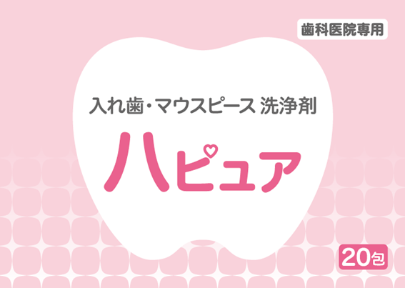 入れ歯洗浄剤「ハピュア」 歯科医院専売の弊社オリジナル洗浄剤です 義歯・マウスピース型矯正装置にお使いいただけます。1箱20包入り歯科医院専用 オープン価格※チタン製品は金属部分が変色する恐れがありますので、ご注意ください 一覧へ戻る